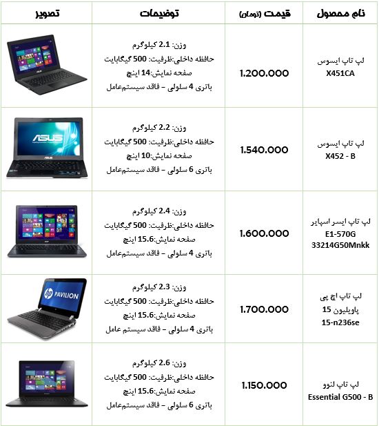 ارزان قیمت ترین لپ‌تاپ های (جدول)