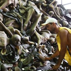 به گفته طراح این ابتکار، ارابه مرگ که حاوی اسکلت های روی هم ریخته انسان هاست، در واقع با احترام هولوکاست را یادآوری می کند و هشداری برای هرگز تکرار نشدن آن است.