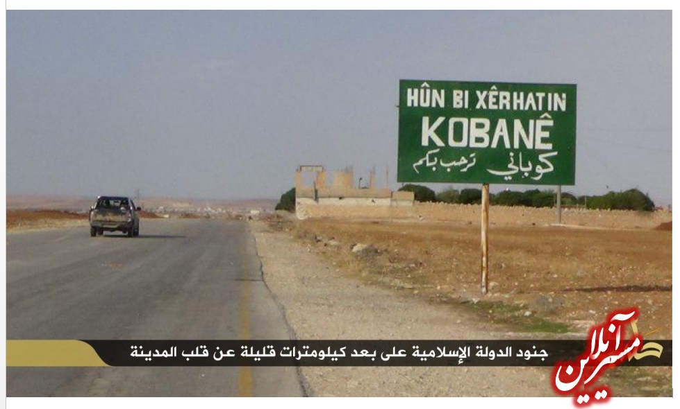 داعش با انتشار این عکس اعلام کرد که در آستانه ورود به کوبانی در شمال سوریه است.