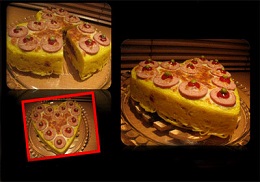 بقیه مایه گوشتی را روی کیک قرار میدهیم و آن را برای مدت پنج دقیقه زیر