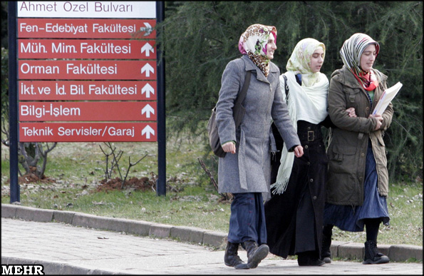 ترکیه - خبرگزاری مهر : پس از تائید مصوبه حجاب از سوی رئیس جمهوری ترکیه امروز دانشجویان محجبه سراسر این کشور به طور رسمی در کلاسهای درس حضور یافتند.