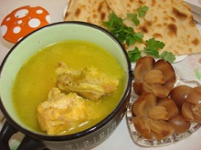 چاشنی را اضافه کنید . آبگوشت بوقلمون میتواند به شکل ساده سرو شود یا