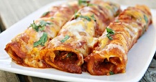 اینچیلادا نان ذرت مکزیکی است که اطراف آن با سس فلفل قزمز پر شده است