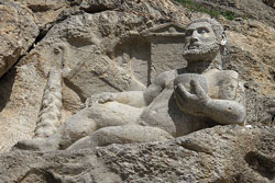طول مجسمه 1.47 متر که به طور برجسته از سنگ کوه تراشیده شده و از طرف پشت به کوه متصل است. در عقب مجسمه نقوش و کتیبه‌ای به زبان یونانی قدیم روی سنگ نقش شده‌ است.