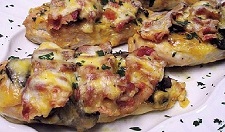سینه مرغ 4 عدد، بدون استخوان و بدون پوست ، به ضخامت 1 الی 1.5 سانت کوبیده شودطرز تهیه : 1- سینه مرغ را به همراه نمک و فلفل آغشته کنید، سپس آن را بپوشانید و برای 30 دقیقه در یخچال قرار بدید.