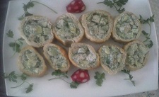 می توانید به عنوان سالاد آن را سرو کنید یا نان باگت از عرض برش بدهید خمیر آن را به ته فشار بدهید داخل آن را پر کنید.