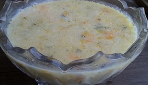 نمک، فلفل و آویشن و خامه یا پنیر را خوب زده و به مواد افزوده و با حرارت کم می گذاریم یک جوش بخورد.