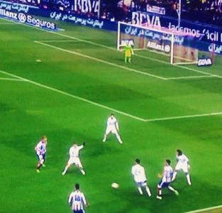 عصرایران، این عکس یک اسکرین شات از بازی رئال مادرید و اتلتیکو مادرید در جریان مسابقات جام حذفی اسپانیاست .