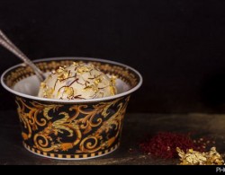 بستنی با زعفران ایرانی و مزین شده به طلا در امارات به ارزش سه هزار درهم به نمایش گذاشته شد.