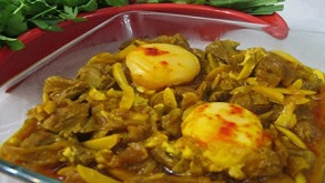 میدهیم و به همراه زعفران به گوشتهای پخته شده اضافه میکنیم وقتی میزان