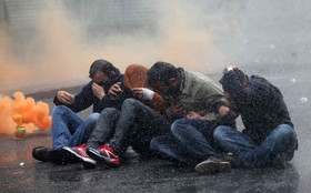 صدها تن از معترضان در حالی که پرچم در دست داشتند در منطقه بشیکتاش جمع شدند که توسط پلیس به عقب رانده میشدند.