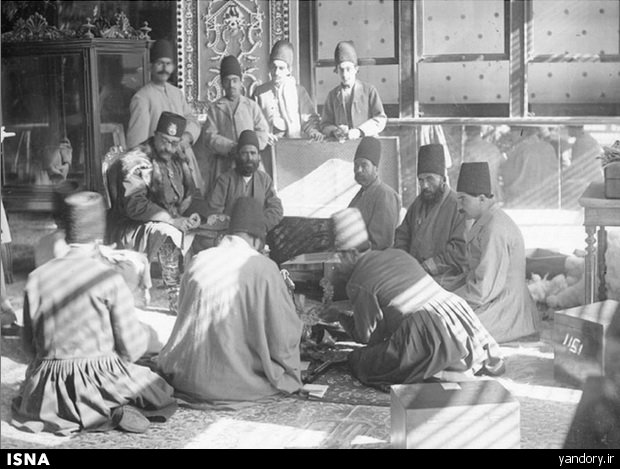 در تصویر زیر، مأموران مالیه در حال گزارش به ناصرالدین شاه هستند. این عکس را «جوان و تاریخ» منتشر کرده است.