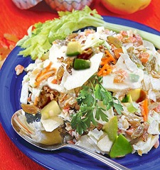 سيب، كشمش و گردو مزه متفاوتي برای يک سالاد درست می كنند.