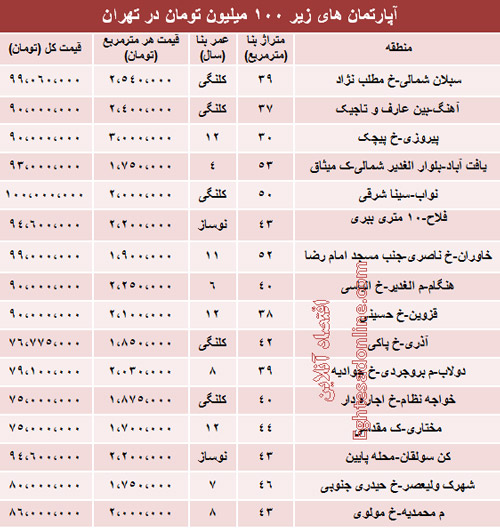 با 100 میلیون کجا خانه بخریم؟ (جدول)