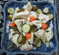 خیار، کرفس، گل کلم، هویج، سبزیجات معطر شامل ترخون، شبت، سیر، فلفل سبز تند، سرکه ، پودر گلپرطرز تهیه شور :