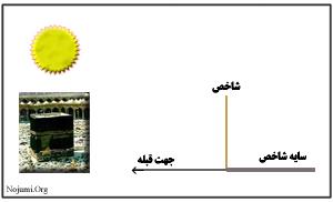 در روزهاي هفتم خرداد و 25 تير، هنگام ظهر شرعي (اذان ظهرِ) مكه، خورشيد دقيقاً عمود بر كعبه است و اين سبب ميشود شاخص در مكه سايه نداشته باشد؛ از اين رو فرد در هر مكاني كه قرار داشته باشد، خلاف سايه او سمت درست قبله را نشان ميدهد.