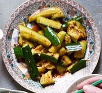 استفاده از یک وردنه یا ساطور به خیارها ضربه بزنید تا از هم جدا شوند.