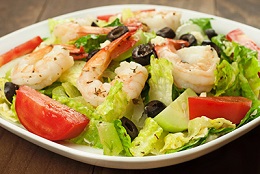 میگو را با کمی کاهو، خیار و گوجه خرد شده مخلوط کنید.