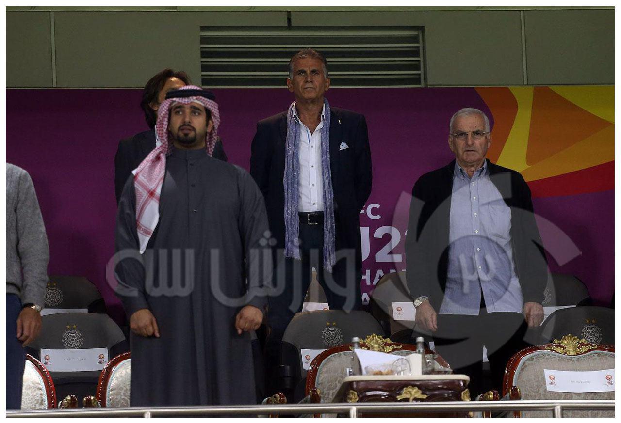 سرمربی پرتغالی تیم ملی ایران در این بازی دوم امیدها نیز در جایگاه ویژه ورزشگاه جاسم بن حمد ظاهر شد.