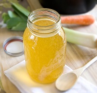 با استفاده از یک توری فلزی و صافی تکه های مرغ را از عصاره جدا کنید.