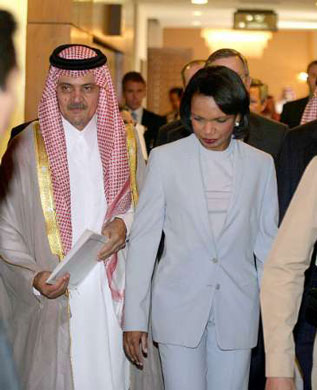 سفر رایس به عربستان سعودی؛ رایس در عربستان بار دیگر گفت:ایران برای رفع تحریم باید غنی سازی را تعلیق کند