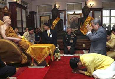 نخست وزیر جدید تایلند در حال انجام تحلیف؛ وی مدتی پیش در یک کودتای آرام به قدرت رسید