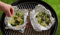 یا باربیکیو یا گریل را با حرارت متوسط گرم کنید. مقداری فویل برداشته و