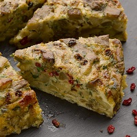 در انتها یک عدد گوجه را ریز خرد کرده و با یک قاشق رب گوجه و یک عدد تخم مرغ و زرشک مخلوط کنید و روی کوکوی بسته شده بریزید و درآن را ببندید تا مغز پخت شده و روی آن طلایی شود. بعد برش زده و در دیس مناسب بچینید و اطراف آن را با خیارشور، زیتون و پیازچه تازه تزئین و میل کنید.