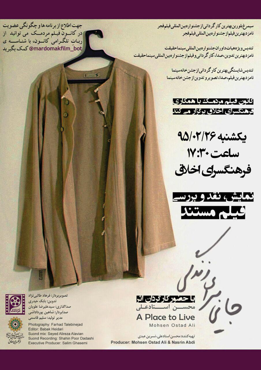 مستند "جایی برای زندگی" نمایش و نقد و بررسی می شود.