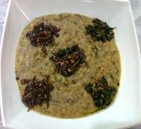 بعد از پخت مواد، کشک را اضافه کرده، نمک و