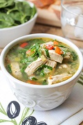 سرو، سوپ را در ظرف های مورد نظرتان بریزید، از تکه های مرغ روی آن ها