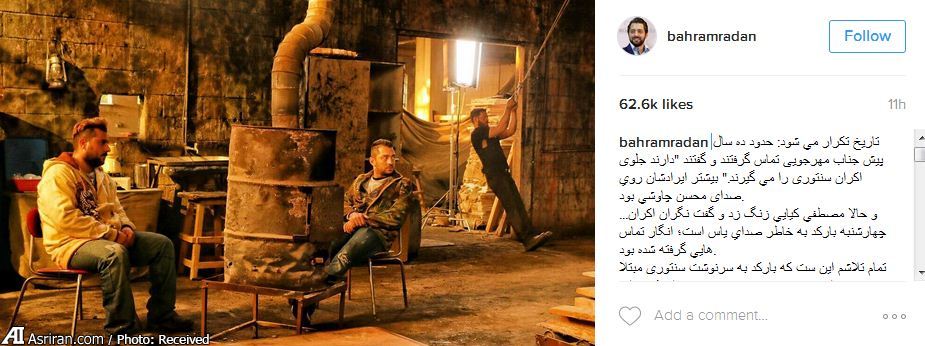 عصرایران- بهرام رادان بازیگر سینما و تلویزیون با انتشار این عکس در صفحه اینستاگرامش نوشت: