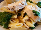 پخته را داخل ظرف مورد نظرتان بریزید. مخلوط مرغ و اسفناج را هم روی آن