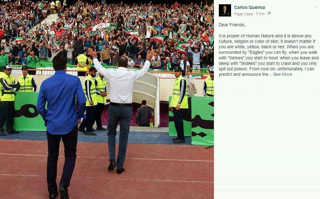 به گزارش عصرایران ساعتی پیش کارلوس کی روش با انتشار پستی در صفحه فیس بوکش نسبت به لغو اردوی تیم ملی واکنش نشان داد.