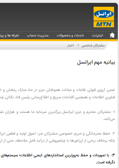 2 - ایرانسل اعلام کرده که "اطلاعات مشترکان ایرانسل هرگز افشا، سرقت و هک نشده و مورد نفوذ و یا در اختیار غیر قرار نگرفته است."