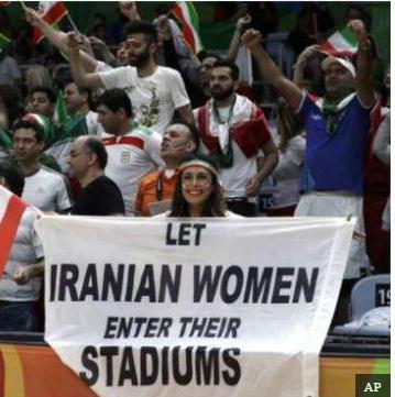 ماموران امنیتی المپیک ریو از یک ایرانی، که پارچهنوشته ای را در اعتراض به ممنوعیت حضور زنان در ورزشگاه های ایران بلند کرده بود، خواسته اند آن را پایین آورد و بازی را ترک کند.