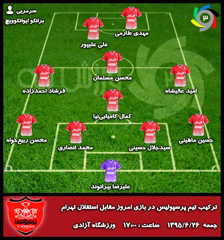 برانکو ایوانکوویچ در حالی 11 بازیکن تیمش را برای تقابل با استقلال انتخاب کرد که تغییری نسبت به دیدار قبلی مقابل تراکتور در ترکیب به وجود نیاورده است.