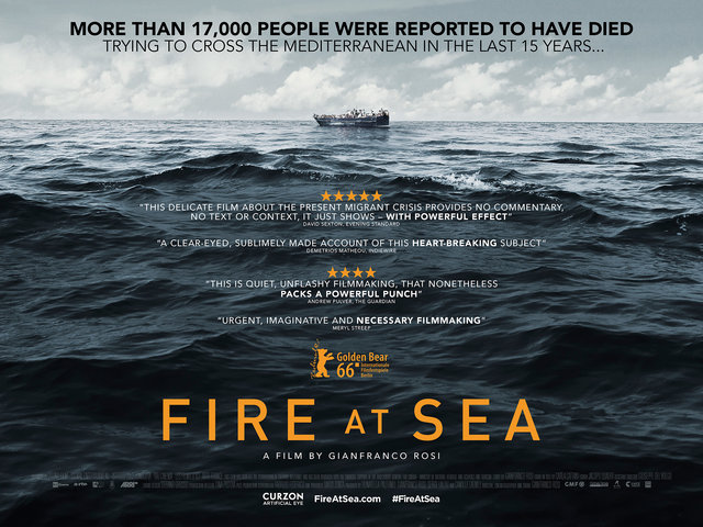 این کارگردان ایتالیایی درباره ساخت این فیلم اظهار کرده بود: این مستند شاهد تراژدی است که پیش چشمان ما در حال روی دادن است و فکر میکنم همه ما مسئول این تراژدی هستیم که پس از هولوکاست بزرگترین اتفاق تلخ در اروپاست. مستند «آتش در دریا» به روایت وخامت اوضاع مهاجران از نگاه یک پسر 12 ساله بومی جزیره به نام «ساموئل پوکیلو» و دکتر جزیره به نام «پیرتو بارتولو» میپردازد.