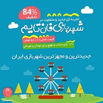 شهر بازی فان تایم در سایت تخفیفان دارای 84 درصد تخفیف است و شما میتوانید فقط با پرداخت 56 هزار تومان این شهر بازی را خریداری کنید. برای مشاهده اطلاعات بیشتر و خرید بلیط این شهر بازی اینجا کلیک کنید.