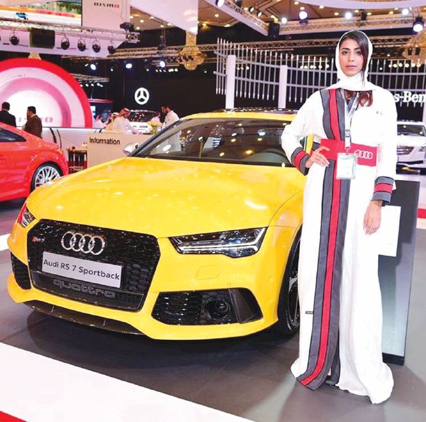 حضور مدل های زن در کنار خودروها در نمایشگاه های مهم جهانی انجام می شود اما این برای اولین بار بود که در یکی از نمایشگاه های خودرو در عربستان سعودی این اتفاق روی می داد.