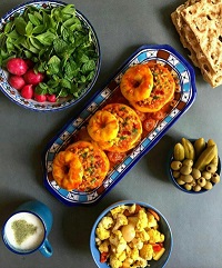 سر بِه را جدا كنيد داخل آن را با قاشق چايخوری آرام خالی كنيد (طوری كه به سوراخ نشود) داخل بِه را از مواد پر كنيد و سرش را بگذاريد. و سپس داخل سس بگذاريد.