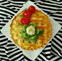 نیم ساعت استراحت دادم و با وردنه خمیر را باز کردم به اندازه قالبم و در قالب گذاشتم و حالت دادم و گذاشتم داخل فر تا خمیر کمی خودش را گرفت.