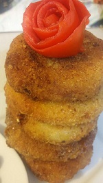 طوری که کاملا مواد داخل آن پوشیده و به شکل پیراشکی آن را فرم دهید و در تخم مرغ فرو کنید و بعد در پودر سوخاری بغلتانید. تمام مواد را به همین ترتیب آماده کنید. روغن را در ماهیتابه بریزید و بگذارید داغ شود. پیراشکی ها را در روغن داغ سرخ کنید.