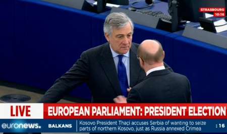 به گزارش ایرنا به نقل از شبکه یورو نیوز ، در این دور از رای گیری که امروز (سه شنبه )برگزار شد، 'آنتونیو تایانی' (Antonio Tajani) ایتالیایی از حزب راست میانه 'مردم اروپا' با 274 رای پیشتاز شد، اما نتوانست به حد نصاب نصف به علاوه یک رای (376 رای) برسد.