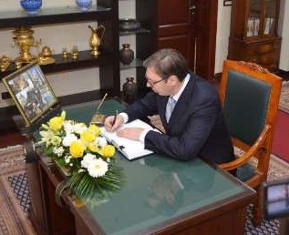 «آلکساندر ووچیچ» نخست وزیر صربستان روز دوشنبه با حضور در سفارت جمهوری اسلامی ایران در بلگراد و امضای دفتر یادبود نسبت به جانباختگان حادثه آتشسوزی ساختمان پلاسکو در تهران ادای احترام کرد.