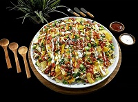 کف ظرف مورد نظر سس کچاپ و سس سفید یریزید بعد یک لایه چیپس بریزید و روی آن سس کچاپ و سس سفید و بعد ژامبون گوشت خرد شده، قارچ نگینی، فلفل دلمه ای نگینی، ذرت مکزیکی، پودر آویشن و فلفل سیاه بعد هم پنیر پیتزا بریزید و دوباره چیپس بریزید و مراحل قبل را تکرار کنید و روی لایه آخر علاوه بر پنیر پیتزا پنیر گودا خرد شده بریزید و کمی جعفری خرد شده بریزید، داخل ماکروویو قرار بدهید در حدی که پنیرها آب شود، نوش جان