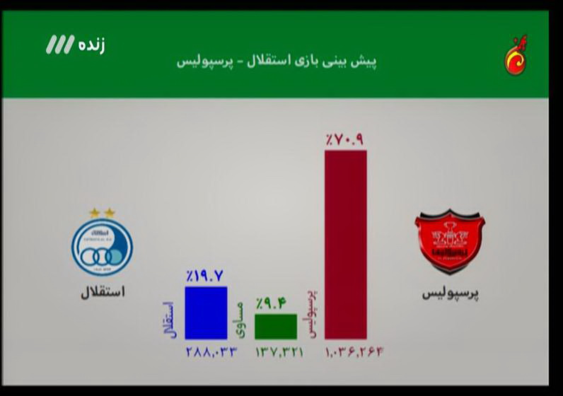 بیش از 70 درصد شرکت کنندگان در نظرسنجی برنامه نود به پیروزی پرسپولیس در دربی رای دادند.