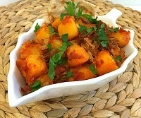 سيب زمينی را آبپز می كنيم و مكعبی خرد می كنيم بعد پياز را خرد می كنيم و آن را تفت می دهيم تا طلايی شود بعد رب گوجه اضافه می كنيم تفت می دهيم تا خامی آن گرفته شود بعد سيب زمينی ها را اضافه می كنيم و هم می زنيم و نمک و فلفل اضافه می كنيم دوپيازه يعنی به ازای دو پياز یک سيب زمينی استفاده می کنیم.