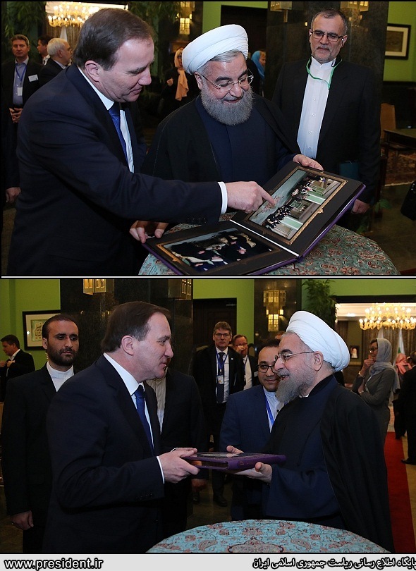 هدیه روحانی به نخست وزیر سوئد (عکس)
