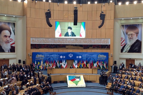 کنفرانس شما در یکی از سختترین شرایط جهانی و منطقهای برگزار میشود. منطقهی ما که همواره پشتیبان ملّت فلسطین در مبارزات آن علیه یک توطئهی جهانی بوده است، این روزها دستخوش ناآرامی و بحرانهای متعدّد است. بحرانهای موجود در چندین کشور اسلامی منطقه موجب شده است تا حمایت از مسئلهی فلسطین و آرمان مقدّس آزادی قدس کمرنگ شود. توجّه به نتیجهی این بحرانها، به ما تفهیم میکند که قدرتهای سودبرنده از آن کدامند. آنانی که رژیم صهیونیستی را در این منطقه به وجود آوردند تا از طریق تحمیل یک درگیری طولانیمدّت، مانع از ثبات و استقرار و پیشرفت منطقه شوند، اینک نیز در پسِ فتنههای موجود قرار دارند.